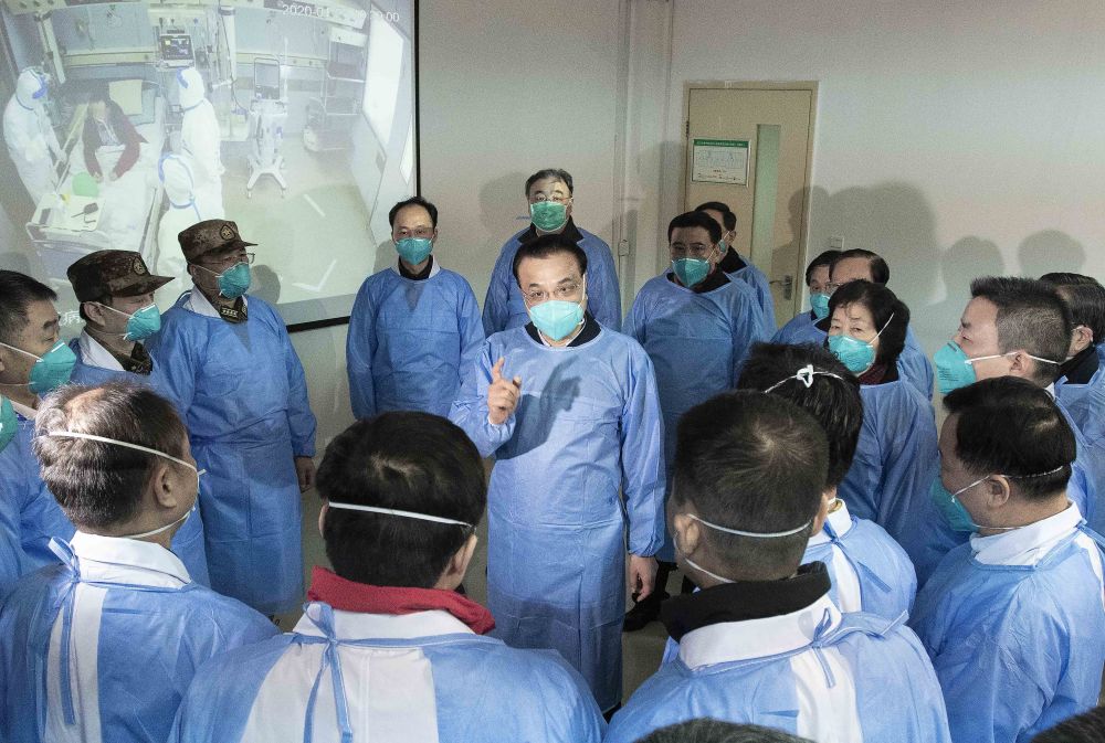 2020年1月27日,李克强同志赴湖北省武汉市考察指导疫情防控工作,代表党中央、国务院慰问疫情防控一线的医务人员。新华社记者 李涛 摄