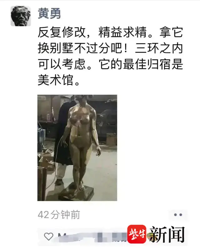 此前该案因被侵权学生陈亮在社交平台上公开举报自己老师黄勇而引发社会关注,而黄勇在公开回应争议时辩称自己为陈亮的“等大女人体”雕塑作品创作提供过意见,并且后来自己对雕塑作品进行了二次创作出作品《春》。面对侵权作品和学生原作品几乎一致的现实,黄勇在接受采访时说出“动一刀也是新作”的言论,很快引起舆论的批评。