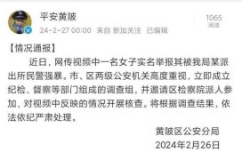 针对网传女子举报武汉民警强奸一事,26日,湖北武汉市黄陂区公安分局发布情况通报称,近日,网传视频中一名女子实名举报其被黄陂区公安分局某派出所民警强暴。市、区两级公安机关高度重视,立即成立纪检、督察等部门组成的调查组,并邀请区检察院派人参加,对视频中反映的情况开展核查。将根据调查结果,依法依纪严肃处理。