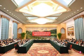 新疆代表团开放日吸引大批媒体前来,预留60个媒体席位的人民大会堂新疆厅聚集近百名中外记者,不少记者只得席地而坐。