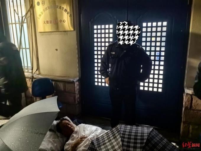 4月29日,红星新闻记者致电59岁的张永振。电话中他表示,自己打了个地铺一直躺在大楼门口。28日晚上海中雨,自己用伞等物品搭起来挡雨,好在整晚有两位团队成员陪伴。