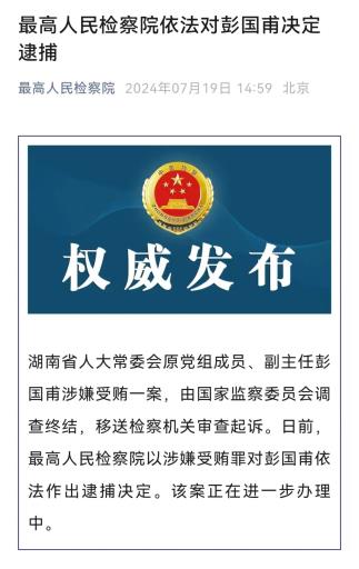 同时,正义网记者与戴道晋曾一同任职湖南省政协副主席的彭国甫,已于2024年1月10日被查。2024年7月19日,最高人民检察院以涉嫌受贿罪对彭国甫依法作出逮捕决定。