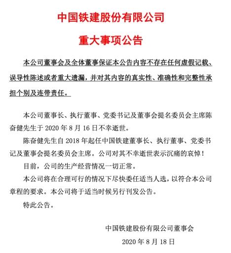 四年前,中国铁建股份有限公司(下称中国铁建)前董事长陈奋健坠楼身亡,曾引发热议。近期,中国铁建投资集团有限公司(中国铁建子公司)党委常委、副总经理马建军,被传坠楼身亡。