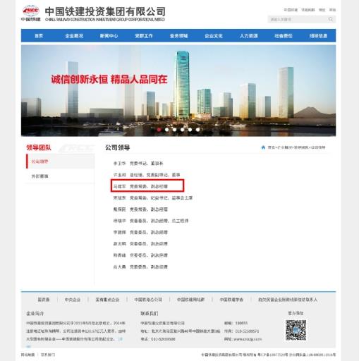 ▲此前中国铁建投资集团有限公司官网“公司领导”栏截图