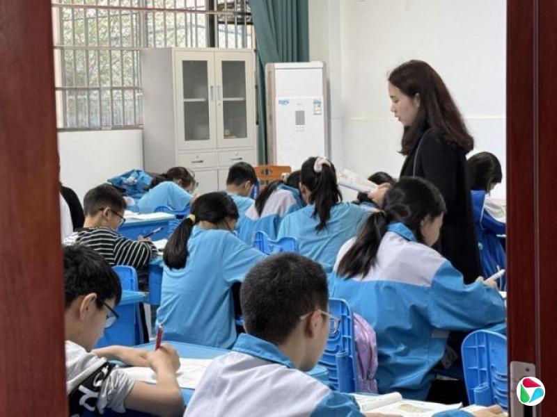 2025年4月11日,汉寿县爱心学院的老师在给孩子们统一辅导作业。(南方周末记者李桂|摄)