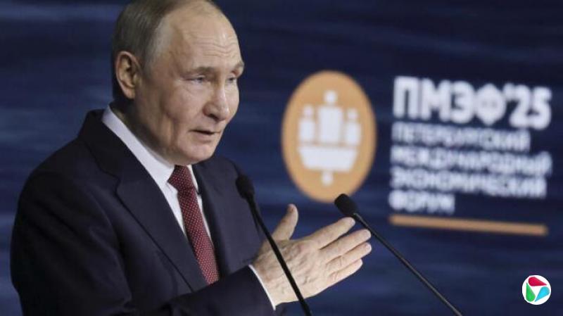 6月20日,俄罗斯总统普京在圣彼得堡国际经济论坛上发表讲话。 ? 美联社图片