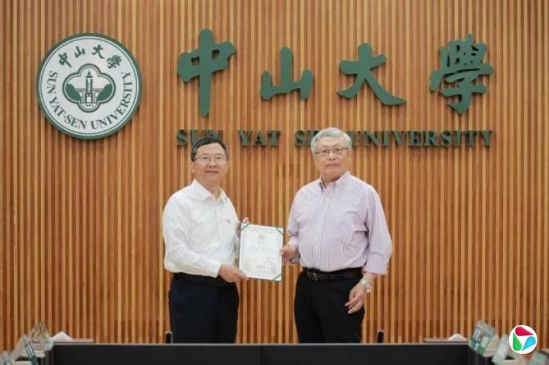 中山大学校长高松为张益唐教授颁发聘书。