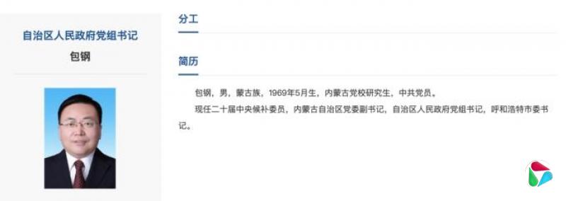 内蒙古自治区政府官网显示,包钢已出任内蒙古自治区党委副书记、自治区政府党组书记。