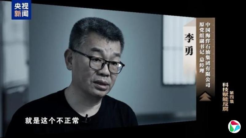 1月14日,《一步不停歇 半步不退让》第四集《科技赋能反腐》播出,中国海洋石油集团有限公司原党组副书记、总经理李勇出镜。