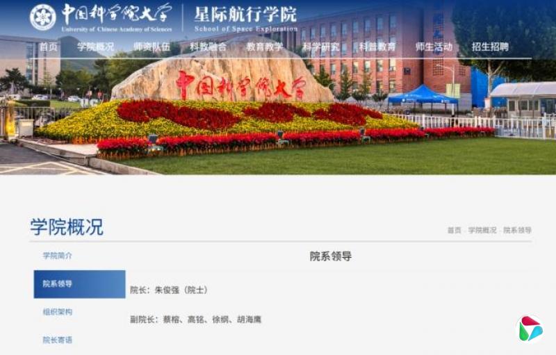 国科大星际航行学院官网显示,院长为朱俊强院士,副院长为蔡榕、高铭、徐纲、胡海鹰。