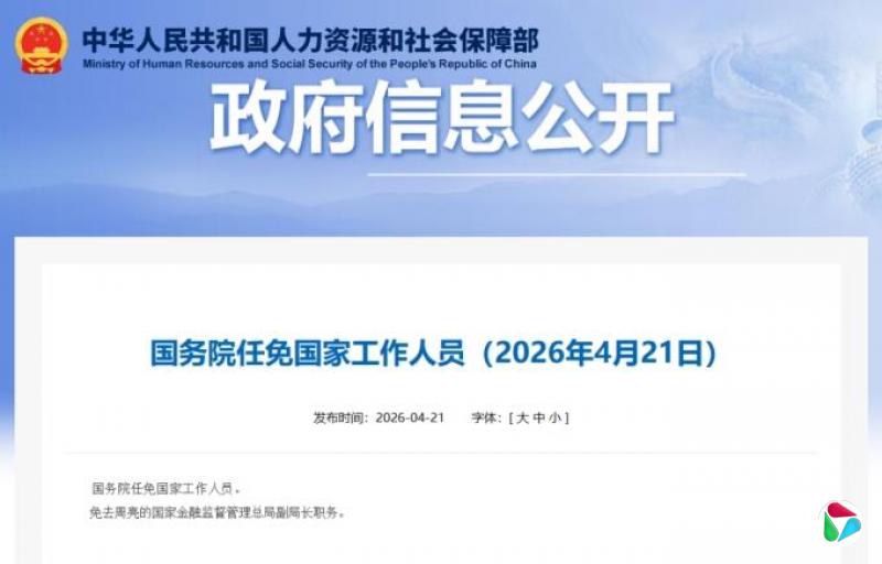 据人社部网站21日消息,国务院任免国家工作人员。