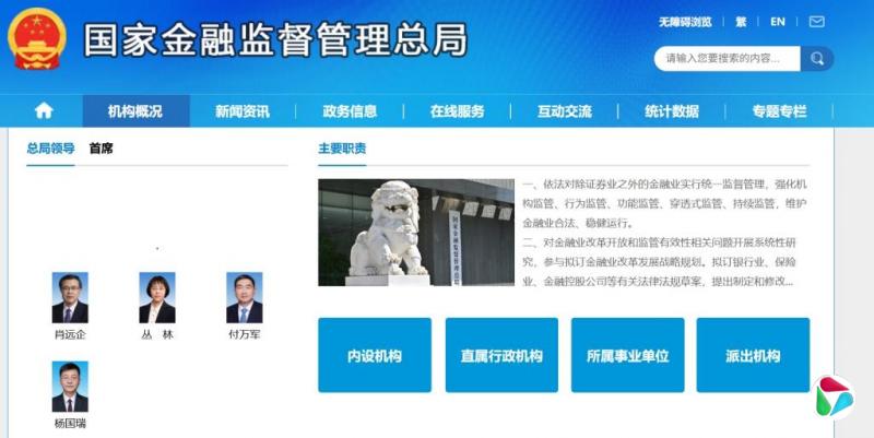 中国金监总局的网站上,“总局领导”一栏,已没有局长信息。(中国金融监督管理总局官网截图)