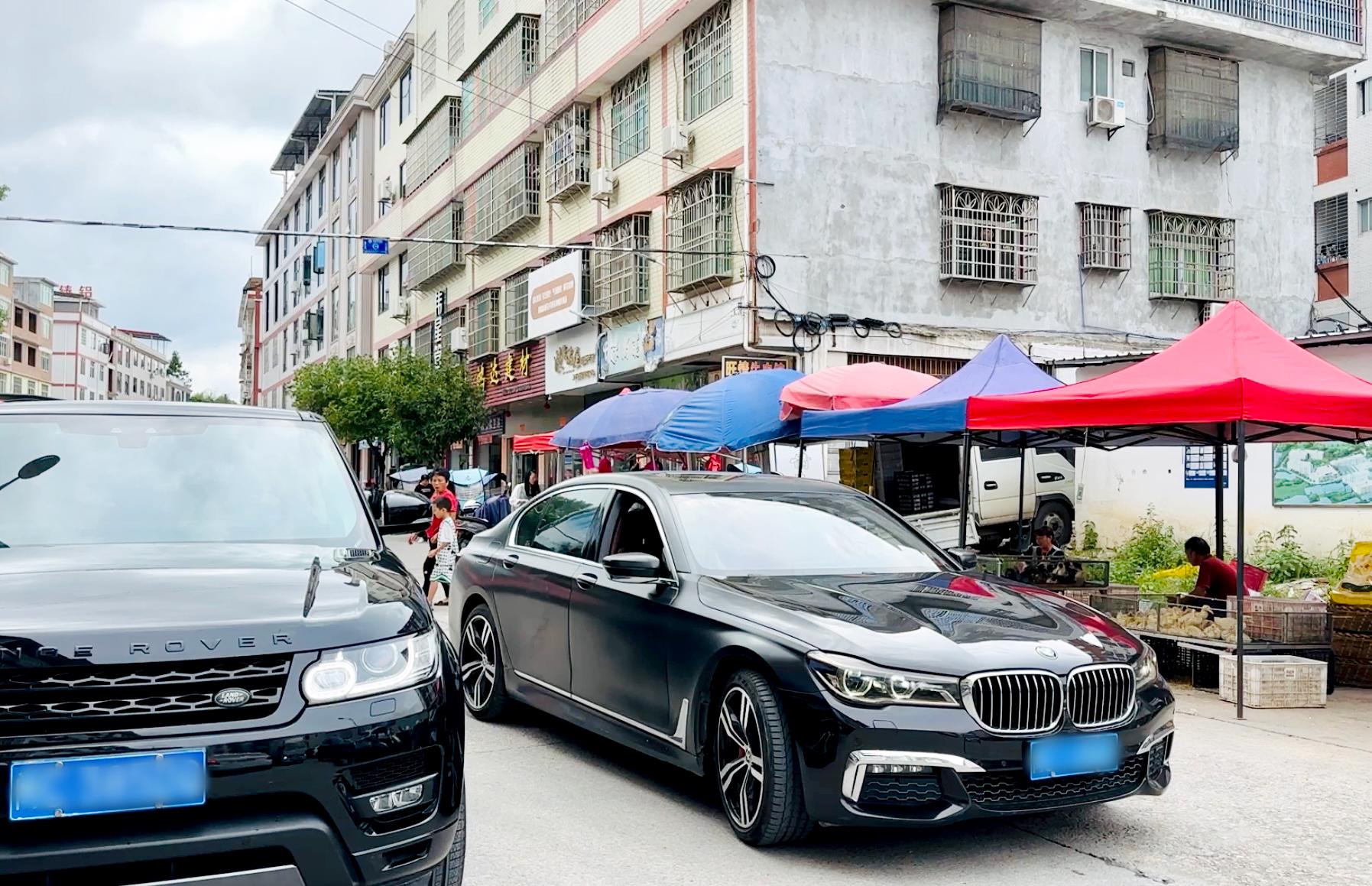 距南斗村2公里的长卿镇,正迎来农历七月的返乡人潮。许多商户在路旁摆摊售卖蔬果、家禽、农药等商品,让本就狭窄的马路更拥堵。短短10分钟内,记者已看到四辆宝马、两辆马赛地和两辆玛莎拉蒂缓慢驶过集市,多是泉州或厦门车牌。