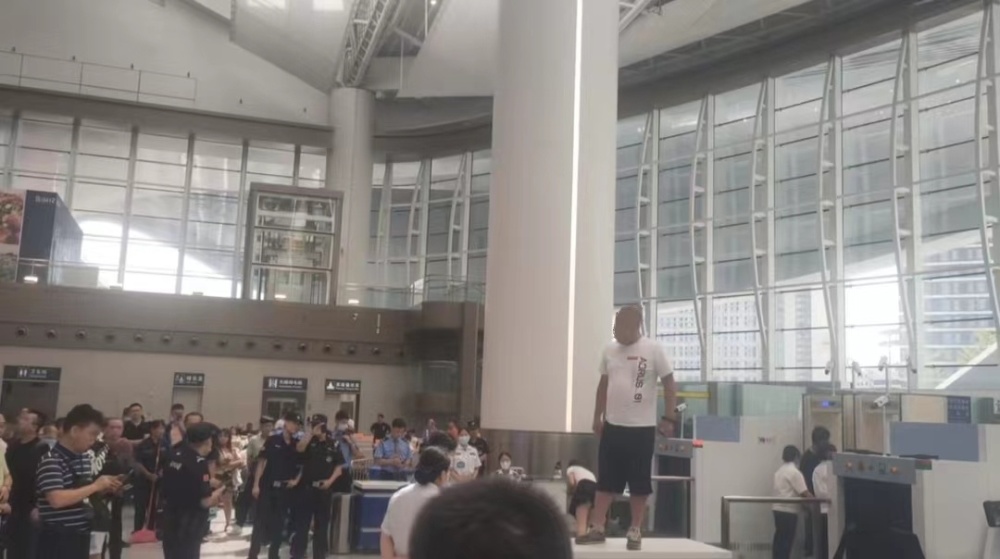 上述网友发布的视频显示,一名身穿白色上衣的男子站在桌上,称自己想把充电宝放在站内,留下电话,却遭到拒绝,并让其自行处理,“我一个人怎么处理?”该男子表示,高铁站是在为难自己。周围有多名工作人员及旅客。
