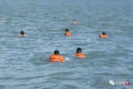 “东部战区”微信公众号星期五发表题为《海上“铁人三项,出击!》的文章,称东部战区海军某勤务船大队近日组织官兵开展海上游泳训练,包括海上跳水、游泳和软梯攀爬项目。