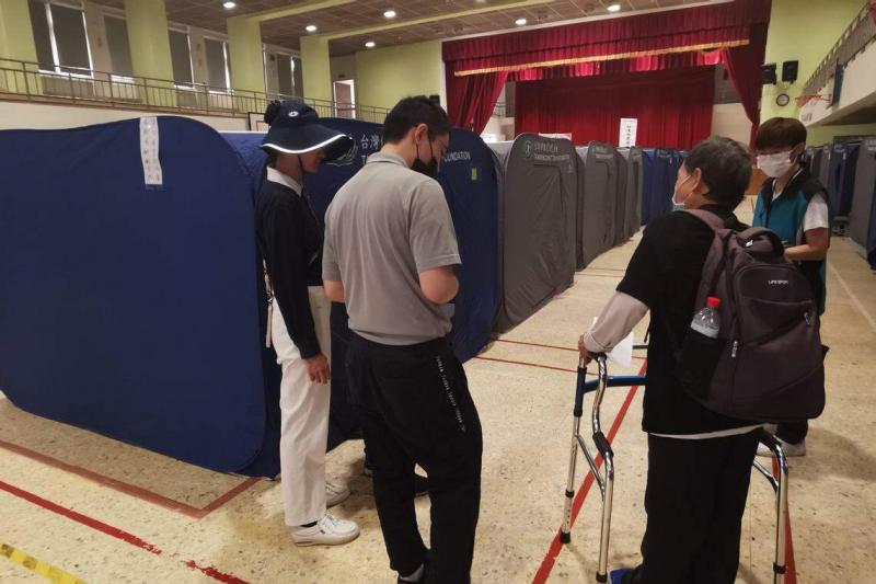 不良于行的长者4月4日到花莲市中华国小的安心关怀站避难。(温伟中摄)