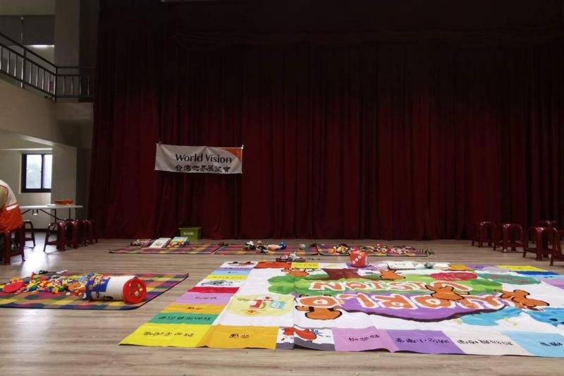 花莲市中华国小的安心关怀站内为避难孩子专设的游戏空间。(温伟中摄)