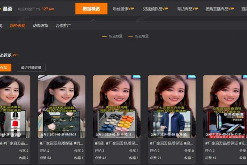 抖音平台上,AI主播吸粉能力更是不输真人。账号名为“温柔”的AI数字人主播目前已吸引127万6000名粉丝,并通过视频附带的商品链接实现了变现。