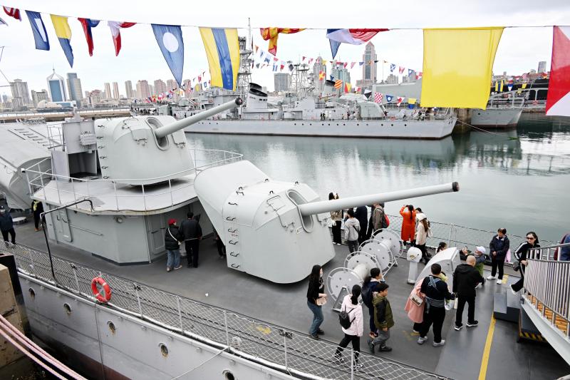 4月20日,游客在海军博物馆室外展区退役军舰上参观。(新华社)