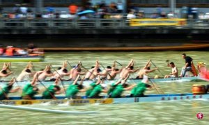 报道引述社交平台流传的现场视频显示,事发当时有两队在竞渡,其中一队操作失控后导致龙舟侧翻、倒扣,多人在水中一边挣扎,一边试图将龙舟扶正。