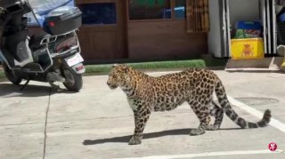 民众上传视频显示,一只金钱豹在县城街道悠闲行走,引发老百姓围观,有警车到达现场进行处置,最终这头金钱豹被相关部门工作人员成功抓捕。
