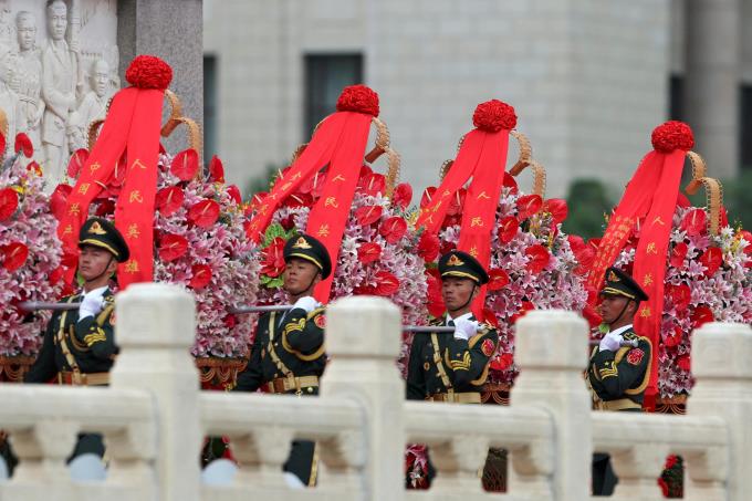 中共总书记习近平等中共和国家领导人星期一(9月30日)在北京出席烈士纪念日献花篮仪式。