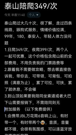 在小红书等社交媒体上,不少“陪爬”还自称能提供更物超所值的服务。
