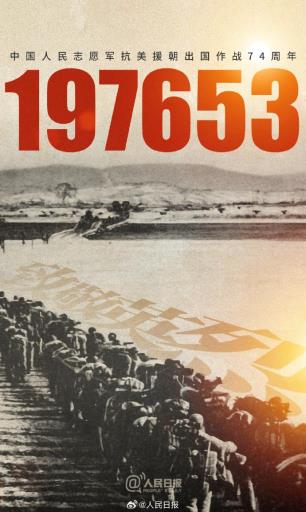 《人民日报》之后也在微博写道:“74年前,中国人民志愿军抗美援朝出国作战。这一战,拼来了山河无恙、家国安宁。74年了,我们从没忘记,那些最可爱的人。今天,铭记伟大胜利,致敬英雄儿女!”