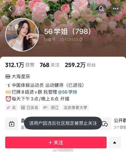 到星期天(24日)晚,吴柳芳发布穿着长袖长裤热舞的影片,但抖音账号已被平台设置禁止关注,理由是违反社区规定。