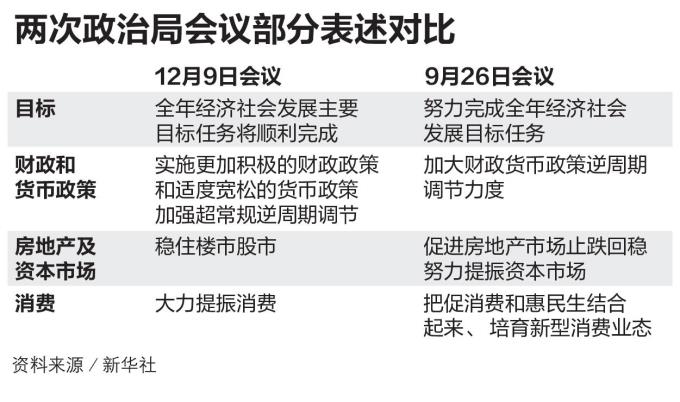 对于今年经济目标,政治局会议表述从9月时的“努力完成”全年经济社会发展目标任务,调整为“将顺利完成”目标,显示官方对实现全年增长5%左右的目标信心增加。