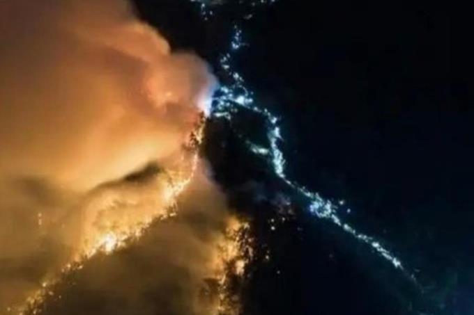 一张重庆山火的航拍照片也被广泛转发。照片显示一条橙色火龙和另一条蓝色人龙,橙色火龙是熊熊烈火,蓝色人龙则是由民众头灯发出的光芒,生动地展现大批人群赴前线救火的情景。有人借此呼吁洛杉矶居民向重庆学习,写道:“你向前一步,山火就会后退一步。”
