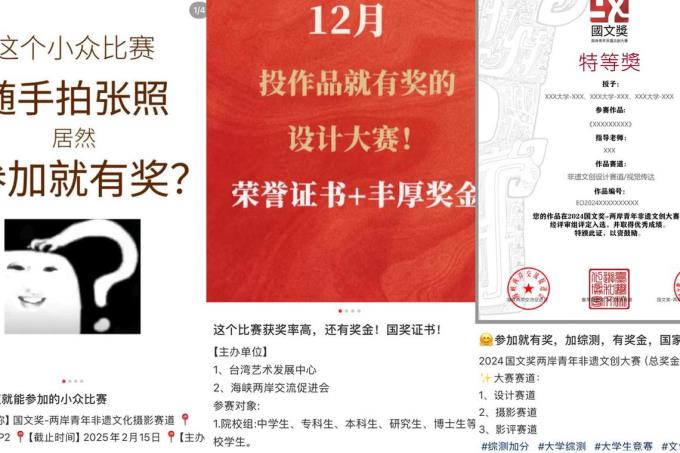 浙江日报报业集团旗下媒体潮新闻跟进报道,发现好些竞赛以低门槛、高获奖率为噱头,含金量低、组织松散。有的宣称“随手拍张照,参加就有奖”,有的在“春节前投稿就有奖”,有的还可延期一个月允许学生们放假后交作品。