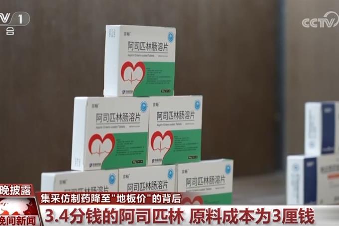 中国官媒央视本月10日播出的“国家药品集采”专题报道说,经查询国内一化工服务平台,阿司匹林原料药市场行情价格约每公斤30元,折合成每片100毫克的原料成本为3厘钱,大批量采购价格更低。