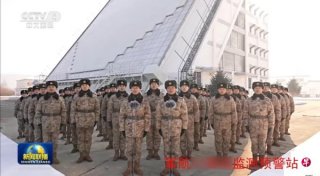 中国央视《新闻联播》1月25日播放一段、中央军委主席官方领导人在春节前夕视察各个部队的新闻,其中军事航天部队进行汇报时,背景可见一套巨大的天线阵列,镶嵌在一座梯形水泥建筑上。