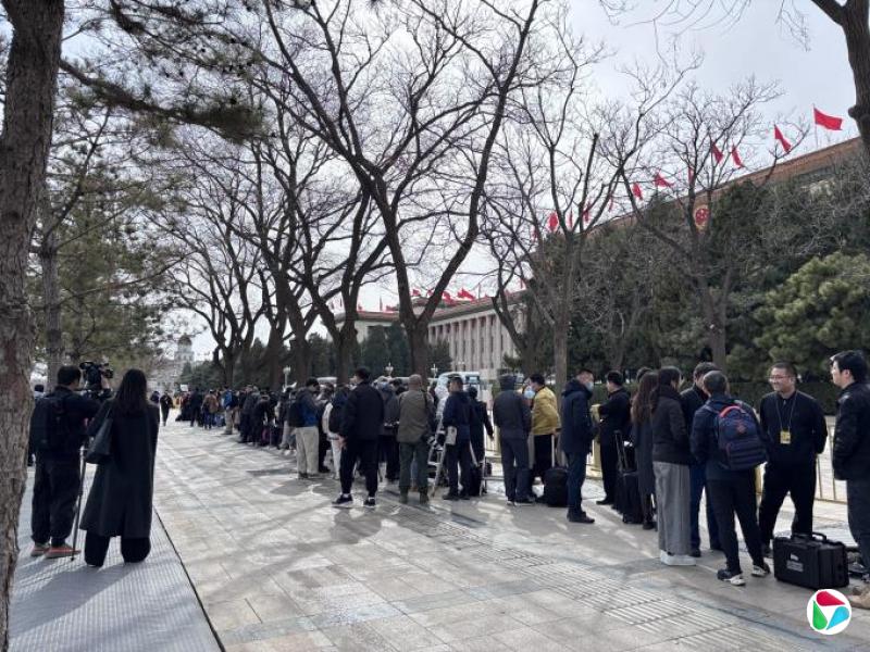下午3时开始的发布会,1时左右便有超过100名记者在人民大会堂外排队。(黎康摄)
