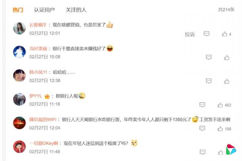 不过,许多网民都批评相关商品是智商税,并调侃说:“银行人天天喝银行水吃银行饭,又不见得他们个个都升官发财!”也有银行职员称:“银行水喝了10年也没富起来,何况是银行土,别闹了。”有关话题在2月27日登上微博热搜榜,截至3月4日下午4时,话题阅读量达1318万3000次。