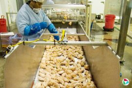 美国阿肯色州斯普林代尔一家工厂的工人在检查鸡翅的质量。中国对鸡肉等美国农产品加征15%的关税。