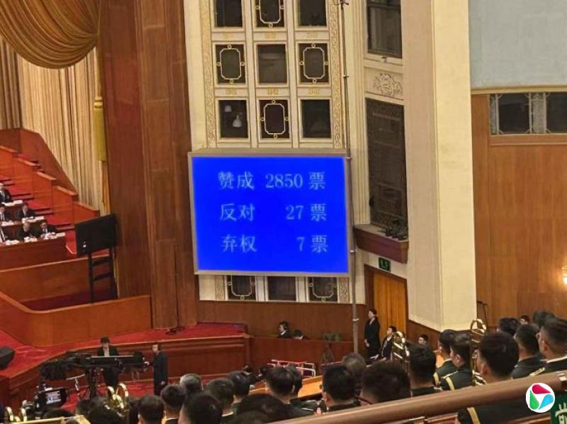 中国全国人大星期二(3月11日)以2850票赞成、27票反对、7票弃权,通过最高人民检察院工作报告。(周岳翔摄)