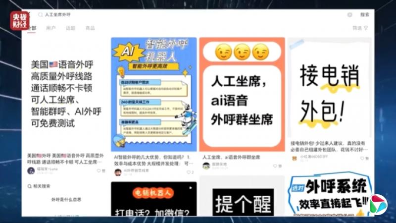 央视3·15晚会指出,过去一年多中国网上出现很多外呼公司的广告,宣称能帮助商家以俗称“电销”的方式,向手机用户拨打营销电话。这些外呼公司并打着“高效触达用户”“精准拓客”等旗号招揽生意,甚至还宣称可通过AI机器人拨打营销电话。