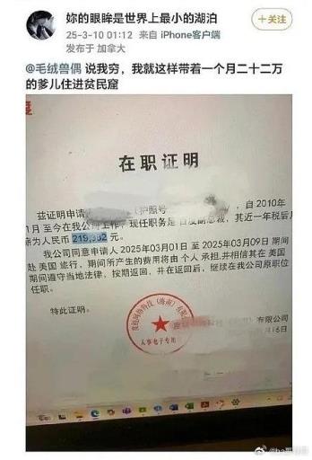 根据 “眼眸”发布的在职证明,其父2010年入职百度,现任百度副总裁,税后月薪接近22万元(人民币,下同,约4万新元)。网民还从她发布过的一张收货截图查出,收货人为“谢广*”。这些信息共同指向百度副总裁谢广军。