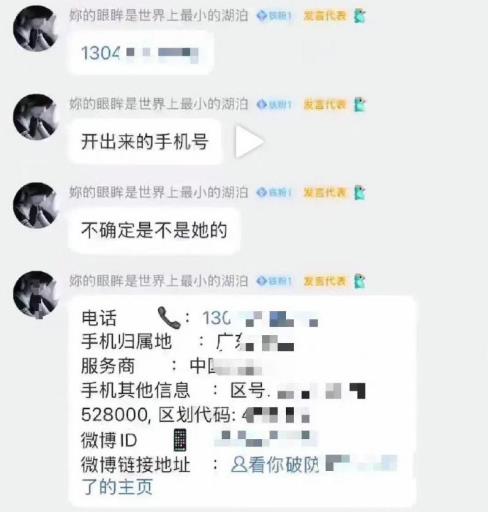网民通过照片、发博信息等进行比对,推断“眼眸”有多个微博账号。从去年至今,已有数名明星粉丝被其曝光真实姓名、身份证号、手机号及归属地等信息。