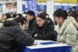 中国国家统计局星期四(3月20日)公布的数据显示,全国城镇不包含在校生的16岁至24岁劳动力失业率从1月份的16.1%上升至2月份的16.9%;不包含在校生的25岁至29岁劳动力失业率从6.9%升至7.3%,不包含在校生的30岁至59岁劳动力失业率从4%升至4.3%。