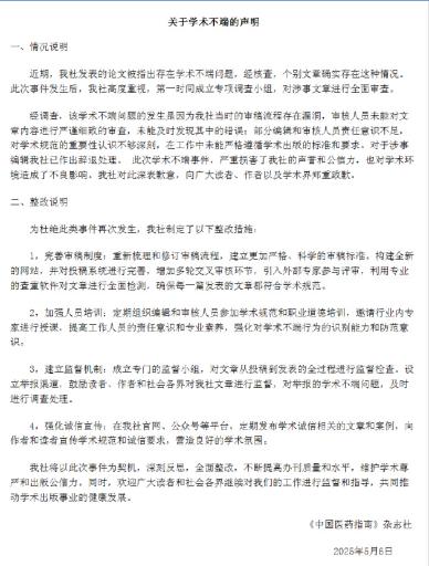 对于如此离谱的错误,《中国医药指南》星期二(5月6日)的致歉声明,把责任归咎为审稿流程漏洞和编辑疏忽。
