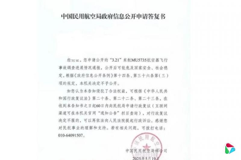 中国官方曾形容“本起事故非常复杂、极为罕见”,至今仍未发布最终调查报告。不过,据香港《明报》报道,网传的一份《中国民用航空局政府信息公开申请答复书》称,东航MU5735航空器飞行事故调查进展情况通报,公开后可能危及国家安全、社会稳定,根据《政府信息公开条例》,“本机关决定不予公开”。