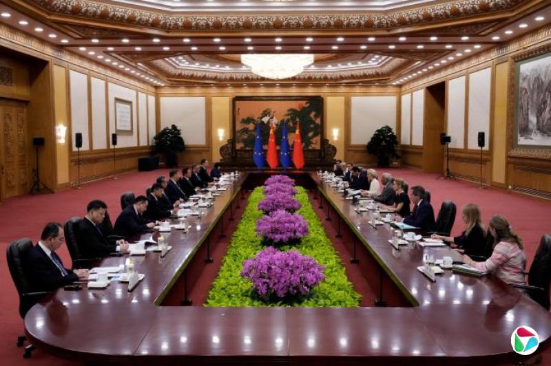 据中方新闻稿,欧方称,致力于深化欧中关系,建设性处理分歧,推动双方合作在平衡、对等、互惠基础上持续取得更多积极成果。欧方不寻求与中国脱钩断链,欢迎中国企业到欧洲投资兴业。面对动荡不安、充满不确定性的世界,欧中要担负责任,共同坚持多边主义。