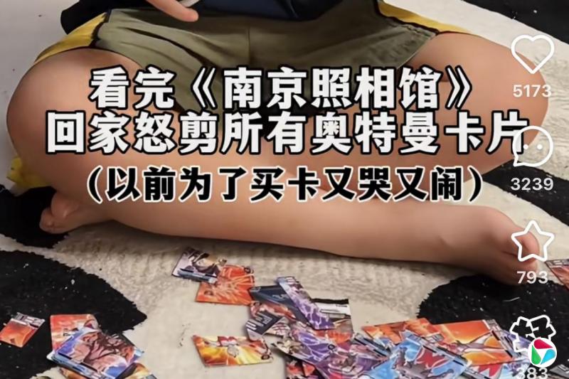 坐标北京的博主“赵苏比”在小红书上发视频称,自己8岁的儿子看过电影之后,回家怒剪所有的奥特曼卡片,并说:“我以后再也不攒日本卡了!”