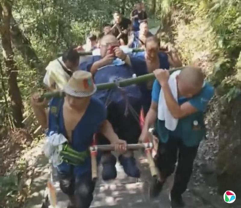 方姓轿夫续称,为保证安全,他们最后安排九人轮流抬。这名超重男子的目的地是半山腰的仙峰寺财神殿,从山脚广福寺到财神殿约21公里,来回抬了10多个小时。一路上,他们四人一组轮流抬,一人负责开路,引来多名行人围观。