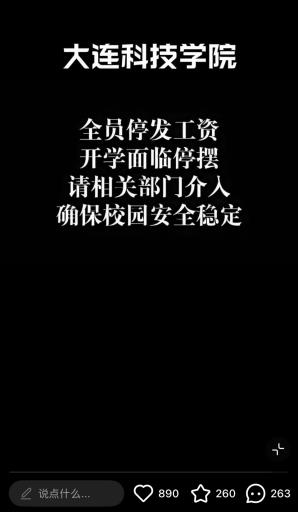 网友发帖称大连科技学院全员停发工资。