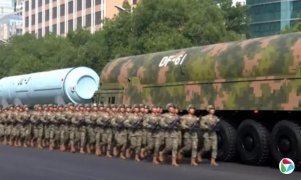 中国国家主席习近平星期三(9月3日)出席九三阅兵式,受阅官兵高呼口号“正义必胜!和平必胜!人民必胜!”