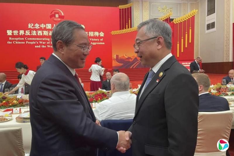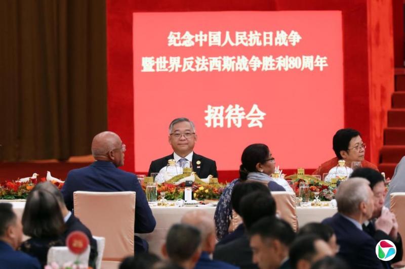 颜金勇(左二)出席由中国国家主席习近平主持的抗日战争暨世界反法西斯战争胜利80周年招待会。(数码发展及新闻部提供)